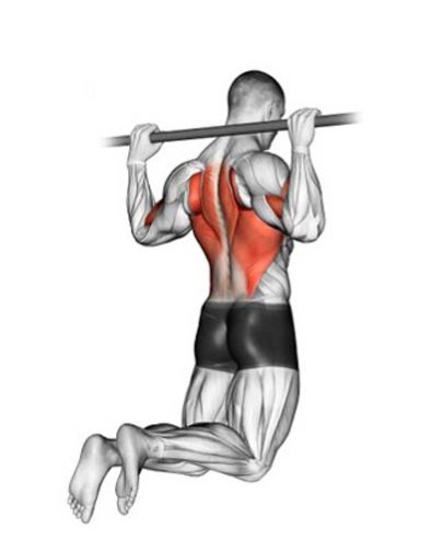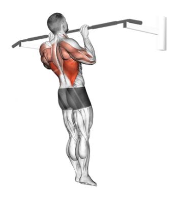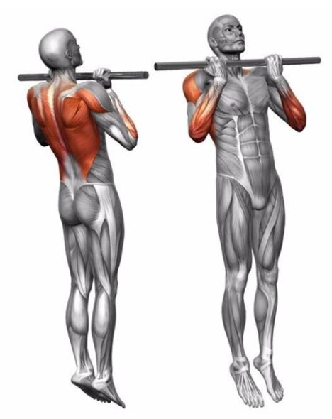 | Подтягивания широким хватом Локти «смотрят» в пол. | |