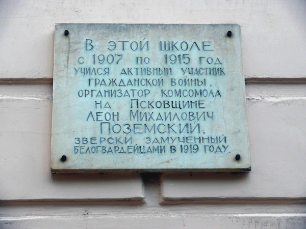 На здании гимназии (улица Калинина, 5), где учился Л. М. Поземский, установлена мемориальная доска.