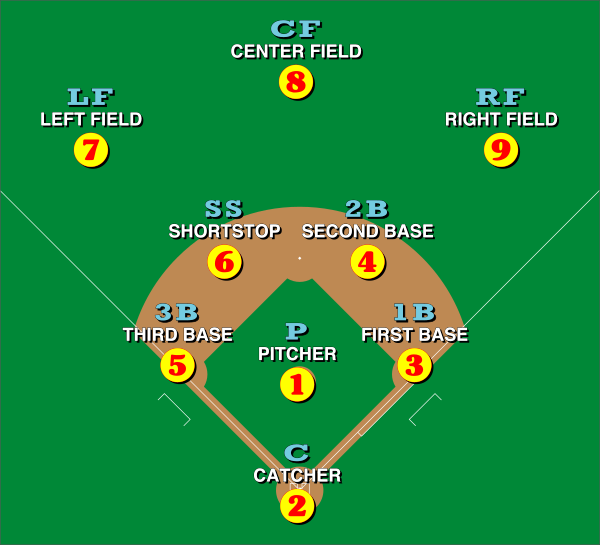 Для удобства в системе бейсбольной нумерации каждой позиции присвоен номер.Выделяют 9 позиций: