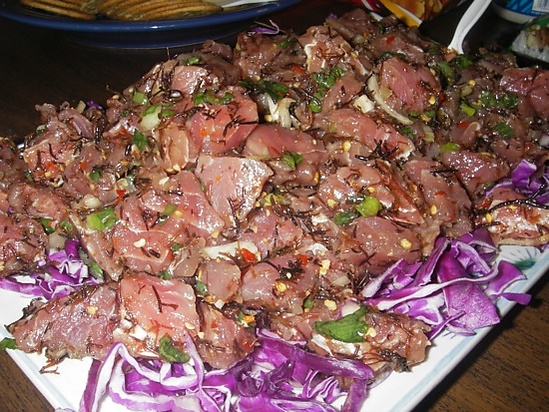 Традиционный гавайский поке может состоять из сырой рыбы, лука, приправы из тунга, водорослей, соевого соуса, зелёного лука или кунжутного масла[11].