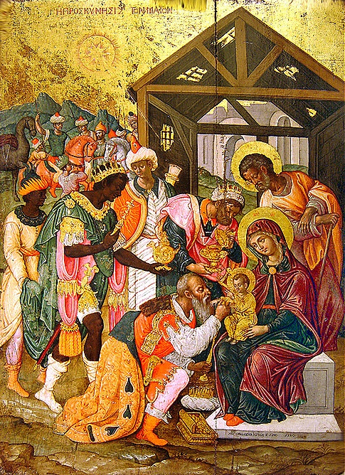 Увидев же звезду, они возрадовались радостью весьма великою, и, войдя в дом, увидели Младенца с Мариею, Матерью Его, и, пав, поклонились Ему; и, открыв сокровища свои, принесли Ему дары: золото, ладан и смирну.