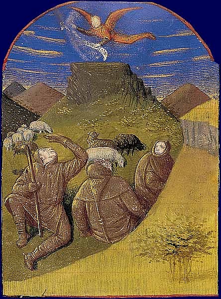 Впервые пастухи появляются на страницах Евангелия, когда, вскоре после рождения Младенца, им, работавшим неподалёку от Вифлеема, является ангел и сообщает о рождении Мессии: