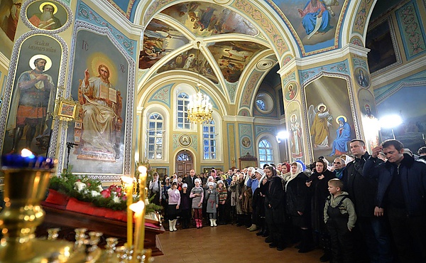 Путин прибыл 6 января 2011 года на рождественскую службу в церковь, после службы подарил храму икону Покрова Богородицы начала 19 века[3]. Президент России посетил также Рождественское богослужение в храме 6 января 2016 года[4].