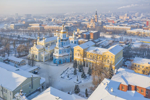 Место возведения храма выбрано там, где крепостная стена ближе всего подходила к обрыву, возвышающемуся над рекой Лопань… Местоположение колокольни собора, её крепкие каменные стены, длинные узкие окна-бойницы, свидетельствуют о том, что она была включена в систему оборонительных укреплений Харьковской крепости[2].