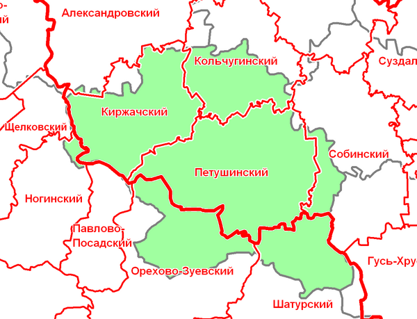 Располагался на части территорий современных Петушинского, Киржачского, Кольчугинского и Собинского районов Владимирской области, Орехово-Зуевского и Шатурского районов Московской области.