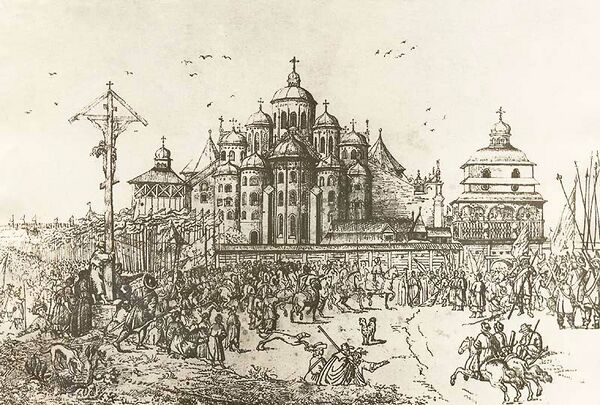 После Переяславской рады 1654 года жители Киева на площади перед церковью Успения Богородицы Пирогощи принесли массовую присягу царю Алексею Михайловичу. По Мартовским статьям в Киеве и нескольких других малороссийских городах были размещены русские гарнизоны. Во время русско-польской войны 1654—1667 годов русский гарнизон в Киеве, состоявший из стрельцов и рейтар, удерживал город на протяжении всех тринадцати лет боевых действий, выдержав в 1658 году осаду Киева мятежными казаками Ивана Выговского[1]. Когда в 1660 году выступивший в поход на запад первый киевский воевода Василий Шереметев из-за измены Юрия Хмельницкого был вынужден капитулировать под Чудновом, оставшийся в Киеве второй воевода Юрий Барятинский отказался передавать город полякам по заключённым Шереметевым условиям. Поляки так и не смогли взять город силой.
