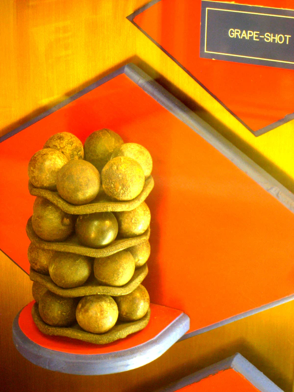 Картечь была самым смертоносным типом боеприпасов, она представляла собой металлический контейнер, в котором находились металлические шарики, 7 слоёв по 7 шариков. В момент выстрела контейнер разрушался и шарики разлетались на манер ружейной дроби. Эффективной дистанцией огня считалось 400 ярдов (370 метров). Ещё более эффективным оружием была «двойная шрапнель», которая использовалась в особых случаях на коротких дистанциях. «Двойная шрапнель» представляла собой выстрел двумя контейнерами одновременно, при этом выстреливалось 98 шариков диаметром в дюйм, что можно приравнять к одновременному мушкетному залпу 98 пехотинцев[11].
