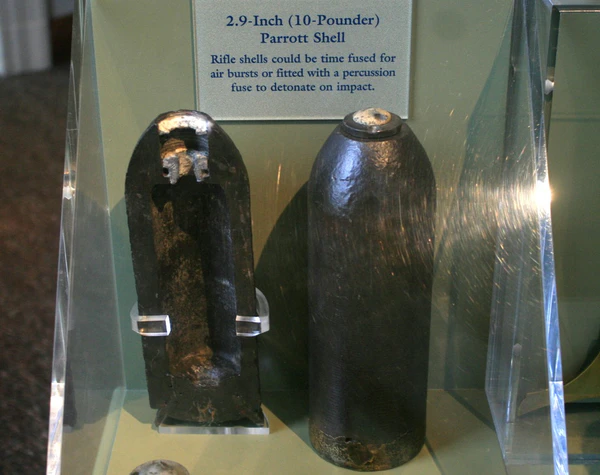 Орудие Паррота, изобретенное Робертом Паркером Парротом, было разных размеров, от 10-фунтового до изредка встречавшегося 300-фунтового. 10- и 20-фунтовые орудия использовались как полевые. Первые были более употребительны, они имели два типа калибра: 2,9 и 3,0 дюйма. Южане использовали оба калибра, что порождало некоторые проблемы с подбором боеприпасов. Северяне до 1865 года использовали только Парроты калибра 2,9, зато широко применяли обычные армейские трехдюймовки. В первый день сражения при Геттисберге три федеральные Паррота бездействовали, поскольку по ошибке получили боеприпасы калибра 3,0. Впоследствии все Парроты-2,9 перенарезали до 3,0, и калибр 2,9 более не выпускался[8].