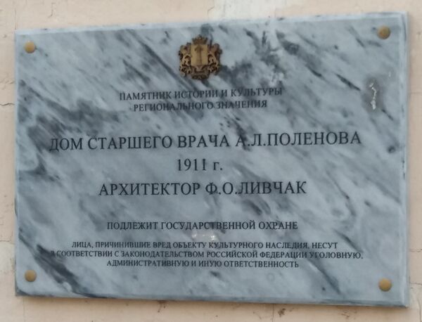 - В областных больницах Ульяновска, Орла и хирургическом отделении Кронштадтского военно-морского госпиталя установлены мемориальные доски профессору А. Л. Поленову.