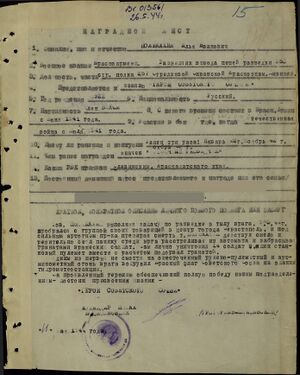 - Медаль «За победу над Германией в Великой Отечественной войне 1941—1945 гг.» (9 мая 1945[7])