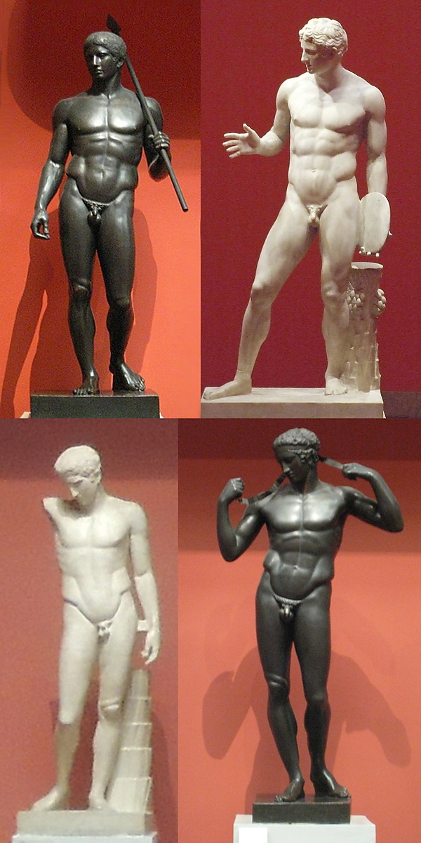 Римская копия, получившая название Идолино (Idolino) с греческой бронзовой статуи круга Поликлета — Музей Уффици, Флоренция. |