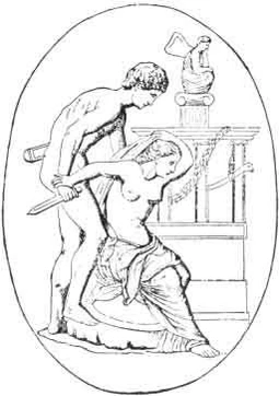 Ахилл, как рассказывает сравнительно позднее предание, случайно увидев её, воспылал к ней любовью, решил взять в жёны и перейти к троянцам, но был изменнически убит Парисом как раз тогда, когда пришёл, безоружный, в Фимбру для бракосочетания с Поликсеной[8].
