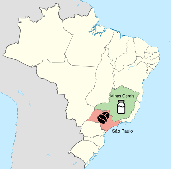 В течение периода старой республики система патронажа, которая определяла бразильскую политику (особенно в сельской местности), предоставляла возможности аграрным олигархам из богатых штатов превалировать в государственных структурах. Политика кофе с молоком фактически означала, что губернаторы двух главных штатов чередовались в должности президента республики.