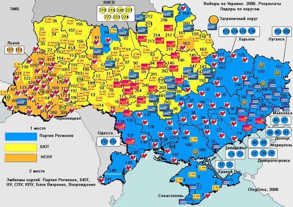 Парламентские выборы, которые состоялись 26 марта 2006 года, вновь продемонстрировали политический раскол страны по языковому принципу. На юго-востоке Украины победили партии, которые выступали за придание русскому языку статуса государственного. На западе и в центре страны большинство голосов получили политические силы, высказывавшиеся за последовательную украинизацию[98][99].