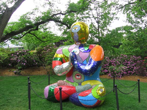 Позднее, в конце третьего — начале второго тысячелетия до н. э., на территории Месопотамии (в частности, в Шумере и Вавилоне) практиковалась раскраска статуй, достаточно реалистично передававшая цвет кожи, волос и одежды человека. Несмотря на относительную недолговечность красящих пигментов, отдельные образцы подобных полихромных статуй сохранились до наших дней[7]. Полихромными, предположительно, были и зиккураты Месопотамии, в том числе высочайший из них — Этеменанки. Ярким примером полихромии вавилонской архитектуры являются ворота Иштар, отделанные глазурованным кирпичом и украшенные изображениями львов, быков и драконов на ярко-синем фоне[8]. По всей видимости, цвет также играл чрезвычайно важную роль в искусстве Древнего Египта (как в скульптуре, так и в архитектуре)[9]. Краски и позолота использовались для украшения храмов и гробниц фараонов, а также при изготовлении статуй, о чём свидетельствуют как дошедшие до нас образцы, так и многочисленные тексты того времени. Наиболее известным образцом египетской полихромной скульптуры является бюст Нефертити, датируемый вторым тысячелетием до нашей эры и отличающийся великолепной сохранностью красок[10]. Полихромными являются многие статуи, найденные в погребальных камерах египетских пирамид. Высказывается также предположение, что сами пирамиды (в частности, пирамиды Гизы) могли иметь трёхцветную раскраску и что в интерьерах частных жилищ присутствовали элементы полихромии[2]. Установлено, что цвет являлся неотъемлемой частью архитектуры и скульптуры Мезоамерики[11]. Вероятно, для ранних цивилизаций цвет имел определённую символику и наделялся магическими свойствами[12].
