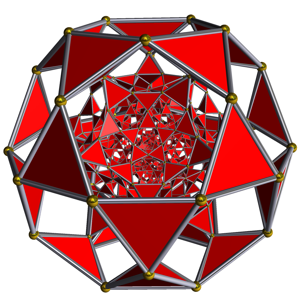 - Полностью усечённый икосаэдр, двойственным которому является додекаэдр, носит имя икосододекаэдр.
