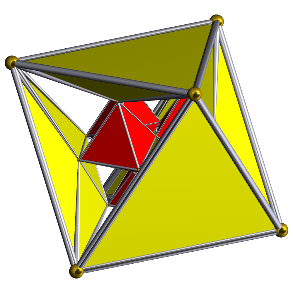 - Полностью усечённый тетраэдр, двойственным которому является тетраэдр, носит имя тетратетраэдр, более известный как октаэдр.