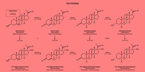 - Прогестогены (прегненолон, прогестерон, аллопрегнанолон и др.);