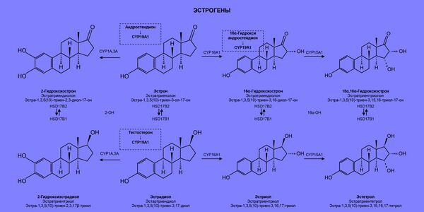 - Эстрогены (эстрон, эстрадиол, эстриол и др.);