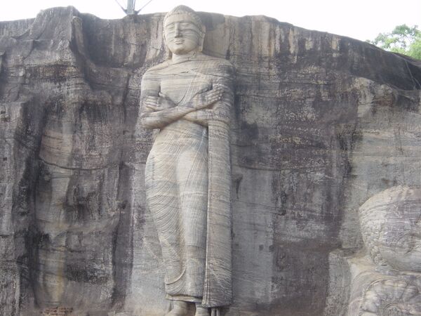 Полоннару́ва[2] — город, средневековая столица Шри-Ланки, расположенная в Северо-Центральной провинции, в 214 км к северо-востоку от Коломбо. Наибольший интерес представляет каменный храм Гал Вихара, самый знаменитый храм на Шри-Ланке. Четыре статуи Будды в различных позах высечены в гранитной скале и датируются XII веком. Несмотря на колоссальные размеры, скульптуры очень реалистичны. Большой интерес представляет третья статуя, изображающая Будду в необычной позе со скрещенными руками на груди. Эта поза широко распространена в Индии. Считают, что целью скульптора древности явилось желание умалить божественную природу Будды, подчеркнув его человечность.