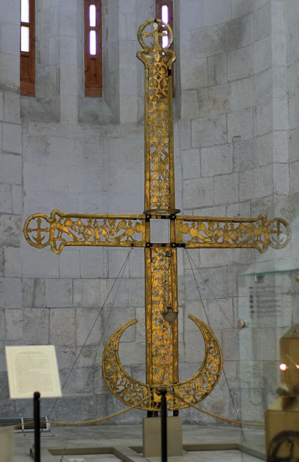 В святоотеческой традиции упоминаются и другие значения полумесяца: так, например, говорят про Вифлеемскую колыбель, принявшую младенца Христа; рассматривают полумесяц как форму евхаристической чаши и крещальной купели; называют кораблём церковным[4]. Таким образом, семантика креста и полумесяца на храме может заключаться также в идеи храма как Дома Божия и Корабля Спасения.
