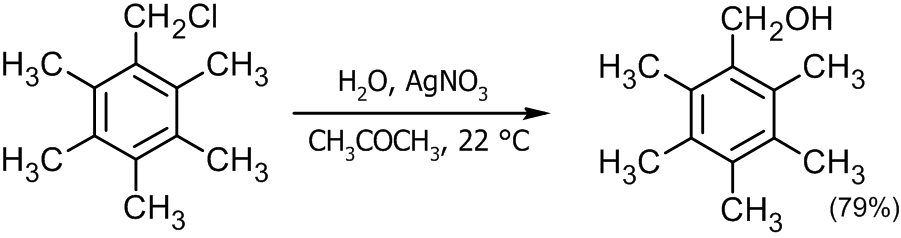 Первичные хлоралканы удовлетворительно гидролизуются под действием водного раствора щёлочи при нагревании[5]: