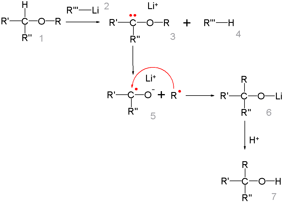Простые эфиры под действием фениллития перегруппировываются в спирты (Георг Виттиг, 1942 год):
