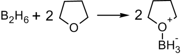 В синтезе используется, обычно, не собственно диборан, а его донорно-акцептоный комплекс с простым эфиром; а сам диборан получают реакцией борогидрида натрия с трифторидом бора в среде тетрагидрофурана[14]: