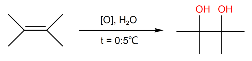 Многоатомные спирты можно получить путём мягкого окисления (по Вагнеру) алкенов - для этого необходимо пропустить их через водный раствор окислителя, например - перманганата калия, - при температуре от 0 до 5 градусов Цельсия: