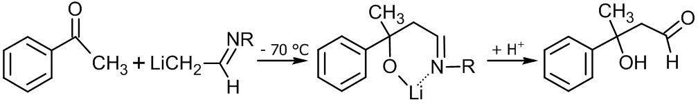 Кроме собственно альдегида, возможно использование имина и диизопропиламида лития в качестве основания[53]: