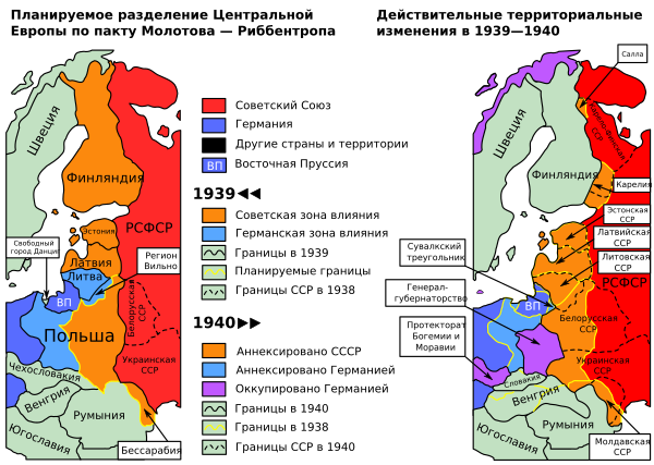 | Изменения | раздел территории Польши между Германией, СССР, Словакией и Литвой | ||