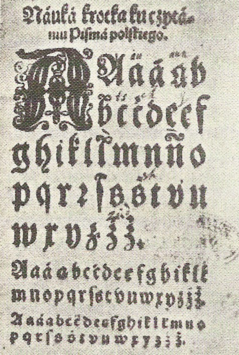 - мягкие среднеязычные шипящие (аффрикату /ć/ и фрикативные согласные /ś/, /ź/); мягкий звук /n’/; гласный звук /u/ (в позиции древнепольского долгого ō) обозначают при помощи букв с /-образным штрихом (kreska «чёрточка») — ć, ś, ź, ń и ó, знак ź встречается также в составе диграфа dź;
