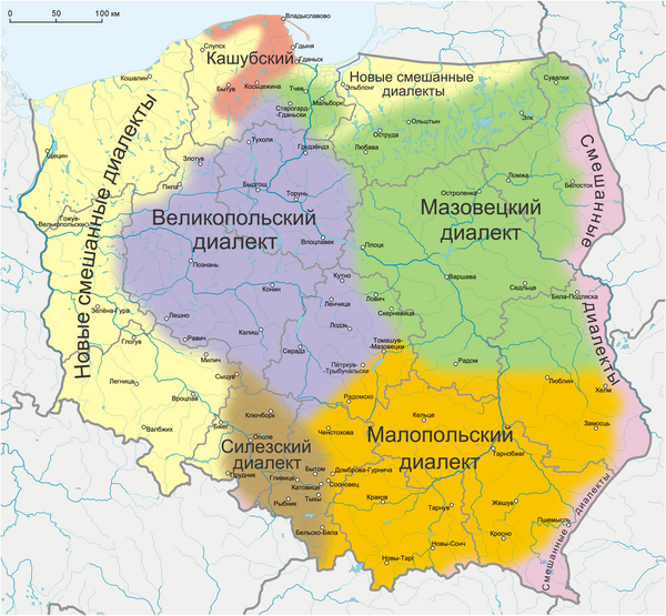 К диалектам (диалектным группам) польского языка первого уровня, восходящим ко времени племенных объединений, относятся[25][28]: