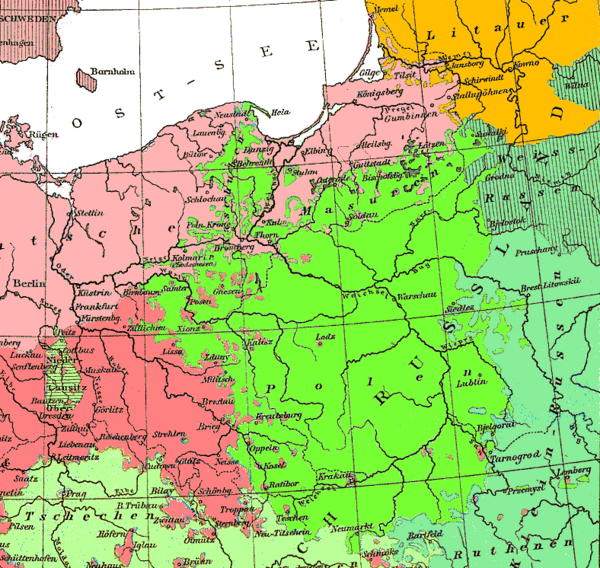 - Силезский диалект, распространённый на территории Верхней Силезии. Развился из верхнесилезских говоров племенного диалекта слензан. При звонком типе сандхи в говорах силезского диалекта представлены как отсутствие мазурения на юге, так и наличие различных типов сдвига в произношении шипящих — мазурение на севере и яблонкование на крайнем юге. Результаты переписи 2011 года в Польше, в которой силезский идиом назвали родным 509 тысяч человек[6], отражают развивающееся в последнее время в Силезии движение за придание силезскому диалекту статуса самостоятельного языка[29].