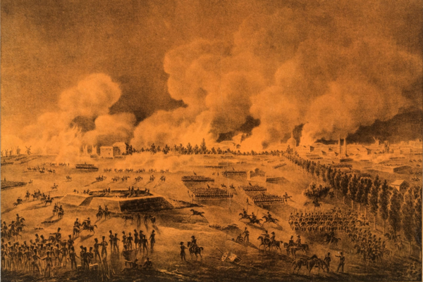 Всего в его распоряжении было 50 тыс. человек, из них 15 тыс. национальной гвардии; Паскевич имел 78 тыс. при 400 орудиях.