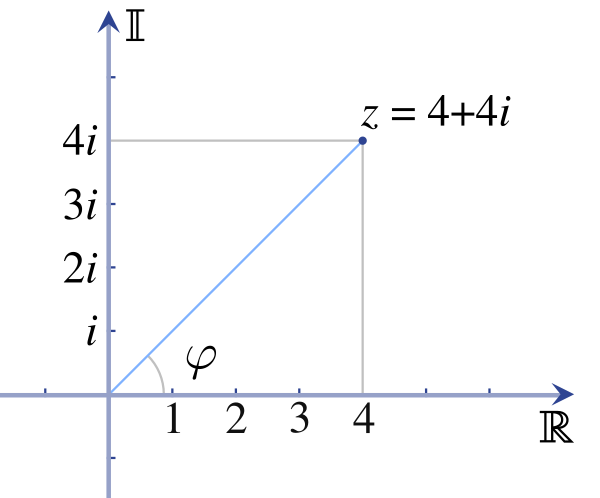 где — мнимая единица, или в полярной (см. формулы преобразования между системами координат выше):