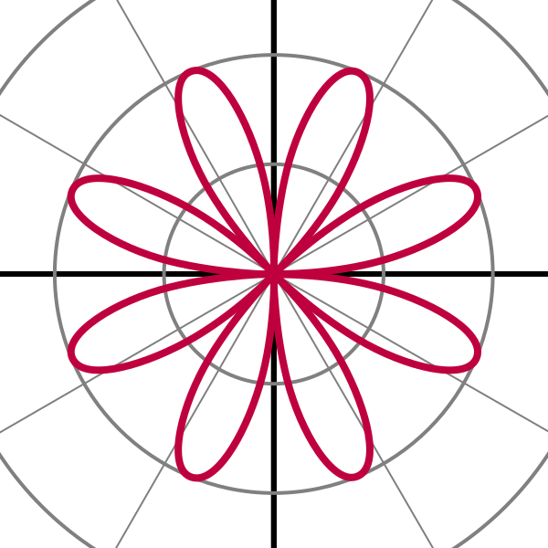 Если считать, что радиус не может быть отрицательным, то при любом натуральном мы будем иметь -лепестковую розу. Таким образом, уравнение будет определять розу с двумя лепестками. С геометрической точки зрения радиус — это расстояние от полюса до точки и он не может быть отрицательным.