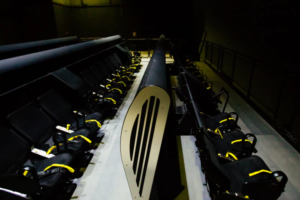 Платформа со зрителями — это массивный гидравлический механизм весом 80 тонн, который разрабатывался специально для данного аттракциона. Поскольку его изготовили уже после строительства здания, возникли сложности при размещении его в зале, но они были преодолены. Как сообщают некоторые источники, для этого пришлось разбирать стену и делать технологические отверстия.