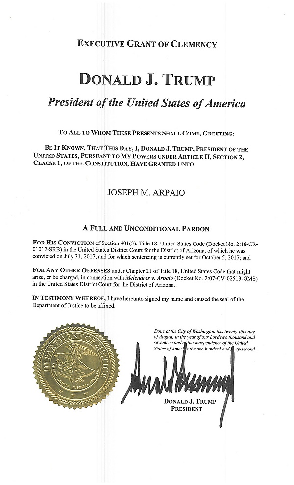 Право помилования по федеральным преступлениям в США (англ. power to grant reprieves and pardons for offenses against the United States) принадлежит, согласно 2-й статье Конституции США, президенту США, исключая случаи импичмента. Прерогатива, по толкованию Верховного суда США, включает: полное прощение за преступление, условное прощение, смягчение приговора, условное смягчение приговора, снятие наложенного штрафа и конфискации, отсрочку исполнения приговора и амнистию[20].