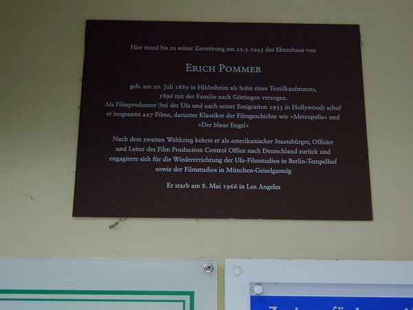 Эрих Поммер (20 июля 1889, Хильдесхайм — 8 мая 1966, Лос-Анджелес, штат Калифорния) — немецкий и американский кинопродюсер. Заведующий производством Universum Film AG (1924—1926). Отвечал за съёмки многих известных картин Веймарской республики — «Кабинет доктора Калигари» (1920), «Доктор Мабузе, игрок» (1922), «Нибелунги» (1924), «Последний человек» (1924), «Фауст», «Метрополис» (1927), «Голубой ангел» (1930). Позднее работал в изгнании в США и вернулся в Германию после войны.