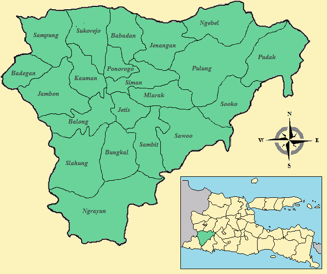 Округ находится на востоке острова Ява. Граничит с округами Мадиун, Магетан и Нганджук на севере, Пачитан на юго-западе, Тренгалек на юго-востоке, Воногири (Центральная Ява) на западе и Тулунгагунг на востоке[4].