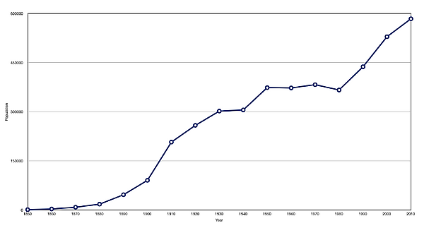 Расовая структура населения выглядела следующим образом: 72,2 % — белые (421 773), 9,4 % — латиноамериканцы (любой расы) (54 840), 8,9 % — азиаты (51 854), 7,8 % — афроамериканцы (45 545), 2,4 % — коренные американцы (14 262), 0,9 % — выходцы из Океании (5 229), и 5,0 % — другие расы (28 987). В городе численность русских (6894) составляет чуть более 1 %, русскоговорящих 1,8 % (10 375).