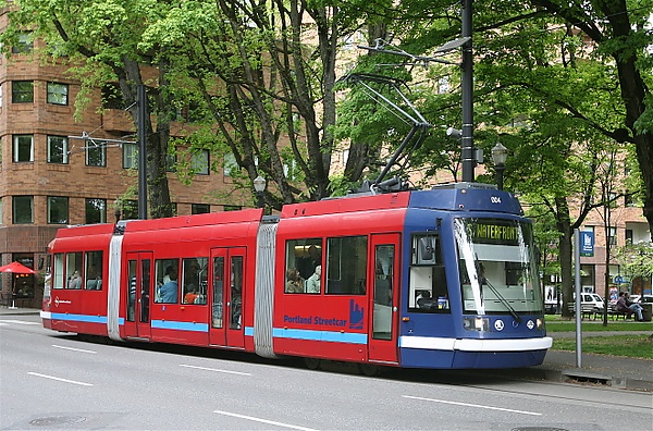 В 2008 году 12,6 % всех перевозок в городе выполнялись системой общественного транспорта[82]. TriMet является главным автобусным перевозчиком региона, также важным транспортным звеном является система легкорельсового трамвая MAX (сокращенно от Metropolitan Area Express — Городской экспресс), которая соединяет город с пригородами. Westside Express Service, или сокращенно WES, была открыта в феврале 2009 года для обслуживания западных пригородов, а также городов Бивертон и Уилсонвилль. Линия Portland Streetcar проходит от южного берега реки, через Университет штата Орегон в Портленде на север к жилым и торговым кварталам. Осенью 2012 года планируется расширение этой линии на 5,3 км в районе восточного берега реки Уилламетт[83]. Линия замкнет кольцевое сообщение с западным берегом, как только в 2013 году будет введен в эксплуатацию мост Портленд-Милуоки[84]. В центральной части города существует зона бесплатного проезда в общественном транспорте, которая называется Free Rail Zone. Пятая и Шестая Авеню составляют Портлендский Транзитный Коридор — две односторонние улицы, предназначенные в основном для общественного транспорта, с ограниченным доступом для автомобилей. Интенсивное развитие транспортной системы продолжается строительством двух новых линий и нового транзитного коридора. TriMet предоставляет доступ в реальном времени к информации о перемещении своих транспортных единиц в системе TransitTracker, более того, эти данные доступны сторонним разработчикам для внедрения в собственные информационные системы[85].