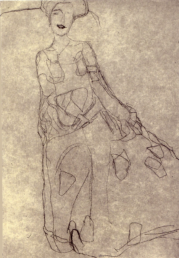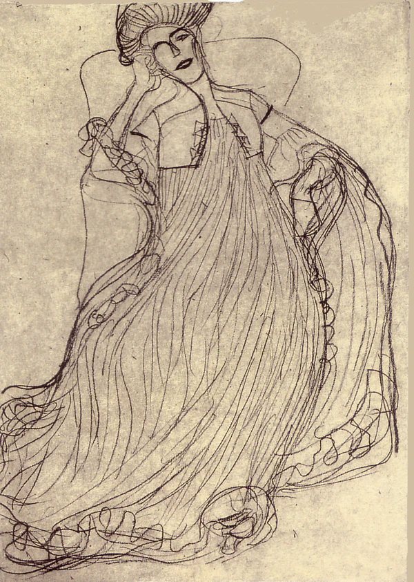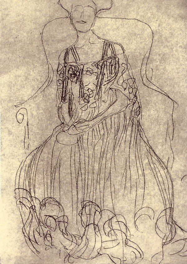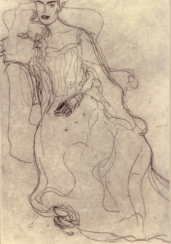 При подготовке портрета начиная с 1903 года Климт выполнил более 100 набросков для картины, которую закончил в 1907 году. Представленные здесь четыре наброска были нарисованы чёрным мелом[4].