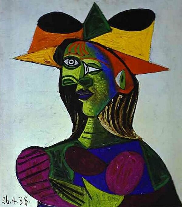 Полотно «Портрет Доры Маар» или «Бюст женщины (Дора Маар)»[6] было написано 26 апреля 1938 года. На нём Дора изображена на белом фоне, сидящей вполоборота. У неё кожа зелёного цвета, тёмные волосы до плеч, на голове цветастая шляпа. Картина никогда не выставлялась в музеях. Она висела в доме Пикассо до его смерти[6], а в 1980-х была куплена саудовским шейхом Абдулмухсеном Абдулмаликом Аль Шейхом[7] в галерее Пейс в Нью-Йорке[8].