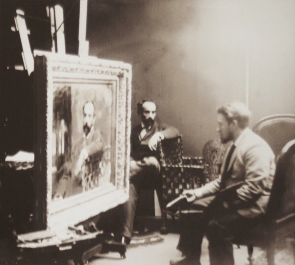 В конце 1892 года Валентин Серов принял решение в качестве акта поддержки написать портрет Левитана. Работа началась в декабре во флигеле особняка Сергея Морозова в Трёхсвятительском переулке – он безвозмездно предоставил Левитану флигель для жилья и работы. На первом этаже располагались жилые комнаты, на втором, большом и хорошо освещённом – рабочая студия. Большинство шедевров Левитана позже были написаны именно в этой студии[2].