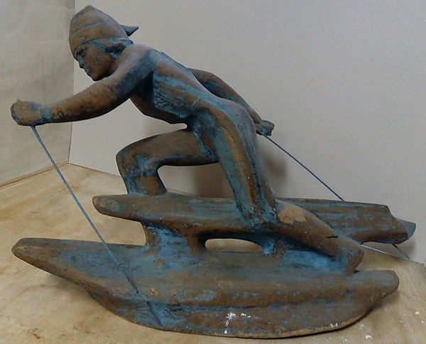 Фигура изображает мчащуюся на лыжах молодую женщину в облегающем спортивном костюме. Поза фигуры динамична и наклонена вперёд. Правая нога согнута в колене и выдвинута вперёд. Левая рука с лыжной палкой расположена спереди, а правая — сзади. На голове надета спортивная шапочка с хвостиком. Экспонат выполнен в полном обнажении фигуры. Размеры скульптуры: высота — 46,5 см, ширина — 79,7 см, глубина — 43 см.