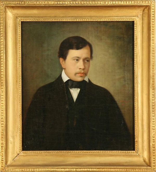 Работа представляет собой портрет мужчины, изображённого по пояс в развороте три четверти вправо. Модель одета в чёрный сюртук и жилет, а также белую сорочку с высоким отложным воротником. Фон выполнен в мягких оливково-сероватых тонах, что придаёт композиции сдержанность и гармонию цветовой гаммы.