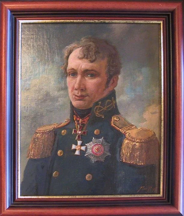 На картине представлен русский мореплаватель, капитан I ранга и участник первой русской кругосветной экспедиции. Изображение выполнено в формате погрудного исторического портрета, в вертикальной композиции и в традиционной для парадного портрета контрастной цветовой гамме светлых и тёмных тонов. Фигура обращена лицом к зрителю, с поворотом головы в четверть налево. Особое внимание уделено деталям униформы, наградам и знакам отличия. Портрет выполнен в реалистическом стиле, портретное сходство достигнуто на основе ранее известных изображений, в том числе портрета работы Владимира Лукича Боровиковского.