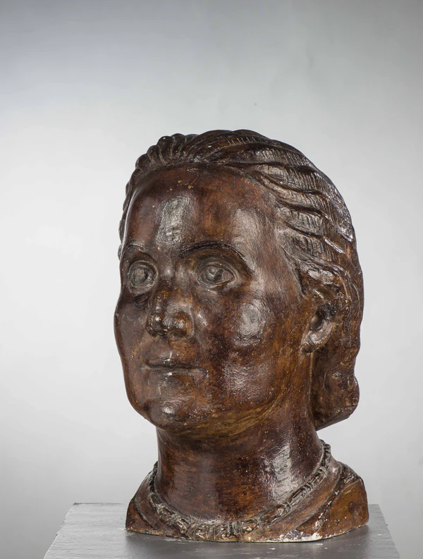 Изображена голова с низким обрезом. Постановка головы выполнена фронтально. Портрет характеризуется носом с горбинкой, тонкими губами и открытым лбом. Зрачки очерчены для передачи взгляда. На шее находится ожерелье. На срезе шеи выгравирована подпись «П. Н. Шурига (1900–1980)». Сзади в нижней части поверхности процарапана надпись «1943 П. Шурига».